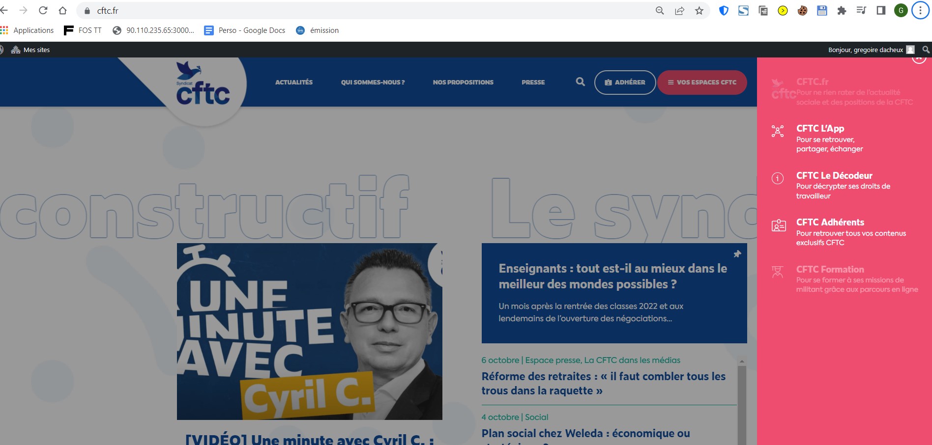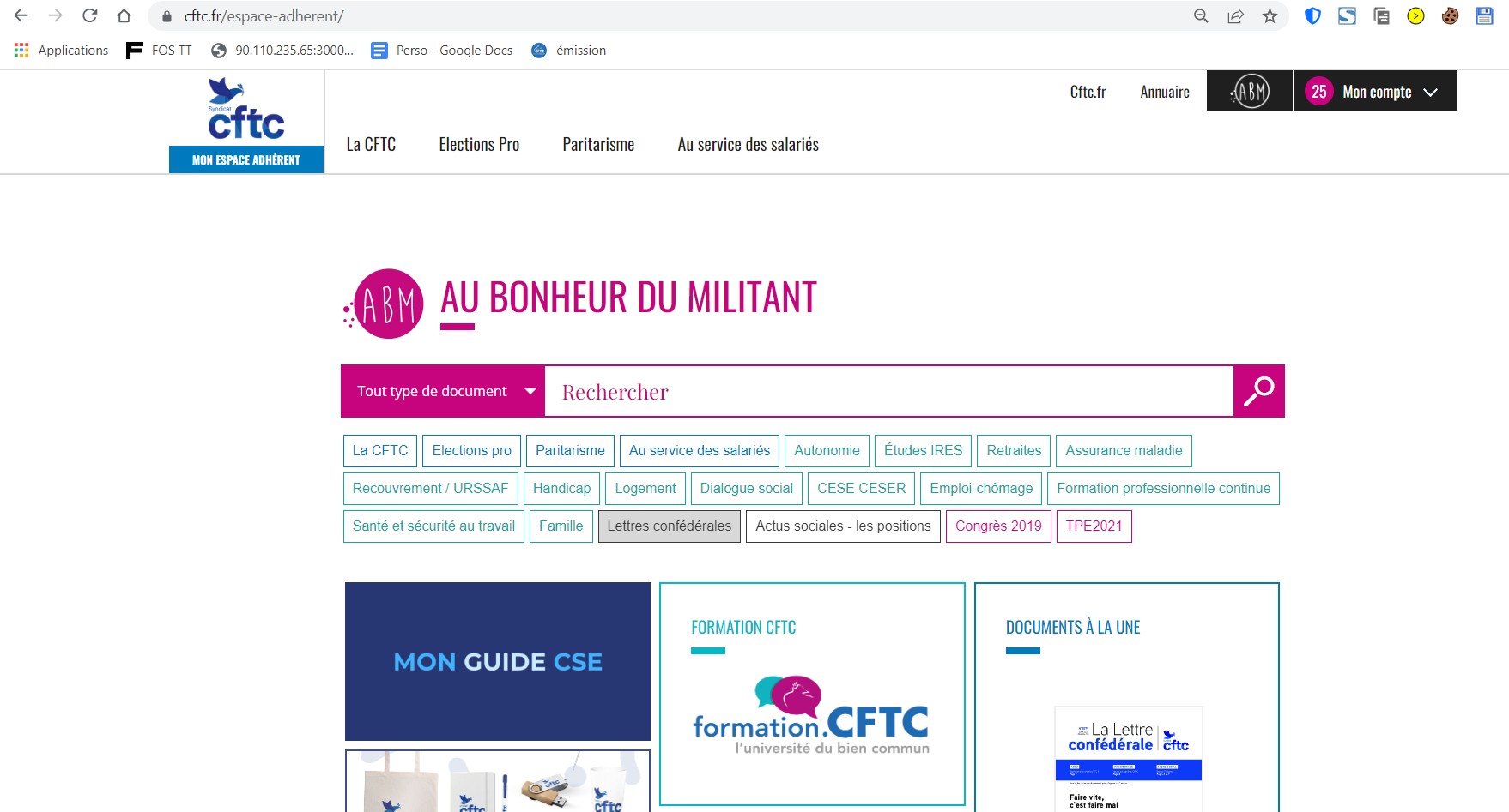 Sur le site cftc.fr, cliquer sur « : vos espaces CFTC ».