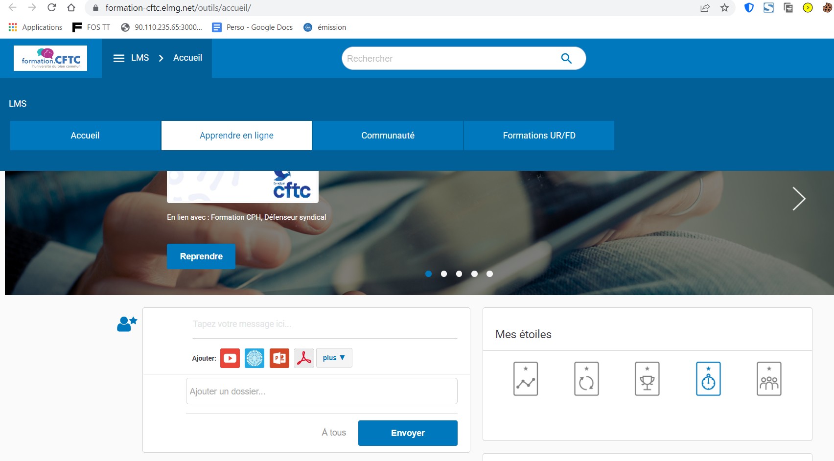 Sur le site cftc.fr, cliquer sur « LMS > Accueil« .