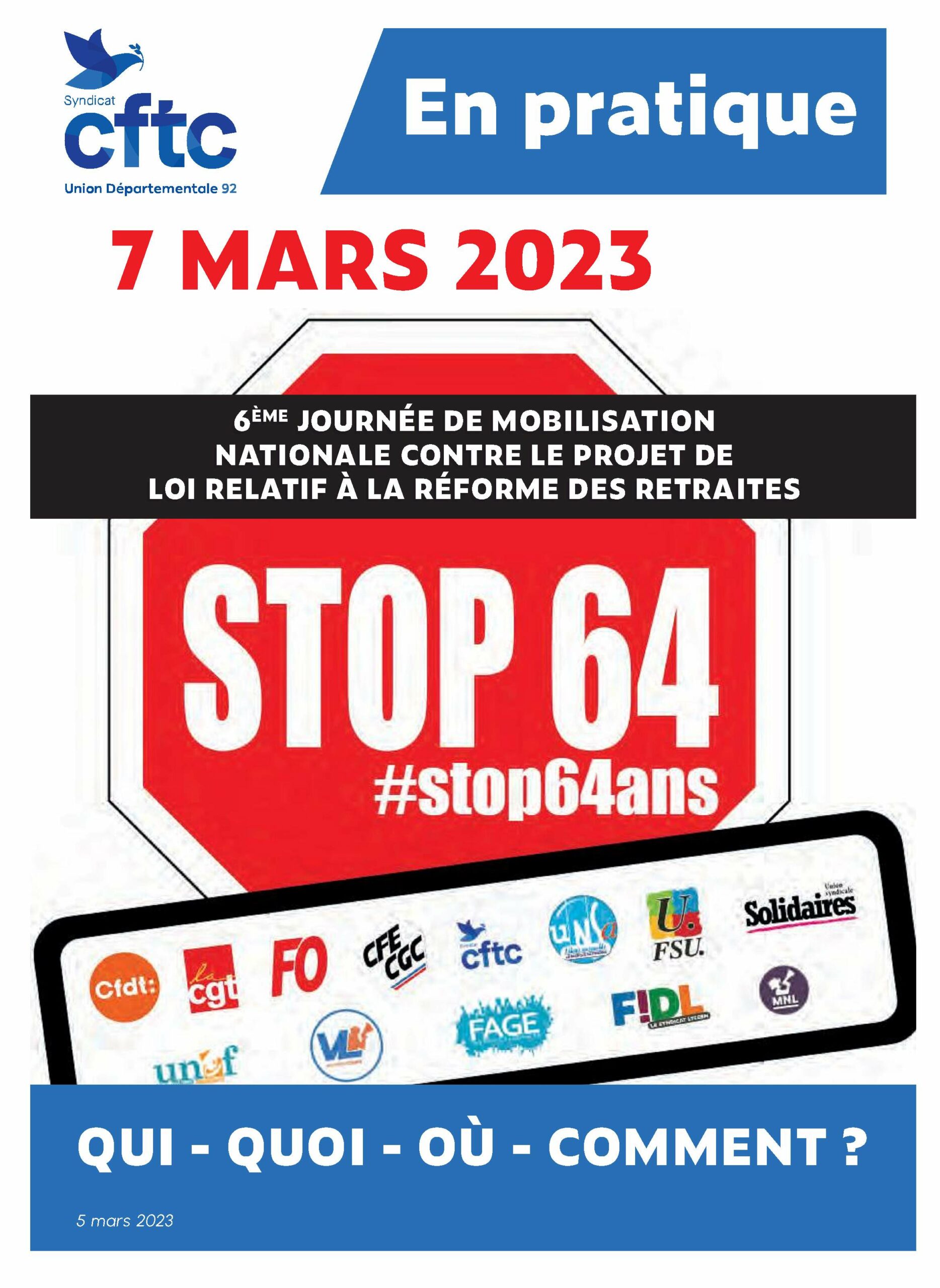 La CFTC s’est engagée pleinement dans les manifestations contre les projets du gouvernement sur la retraite. L’ensemble de nos organisations géographiques ou sectorielles ont répondu présent à l’appel contre la réforme. Venez nombreux le 31
